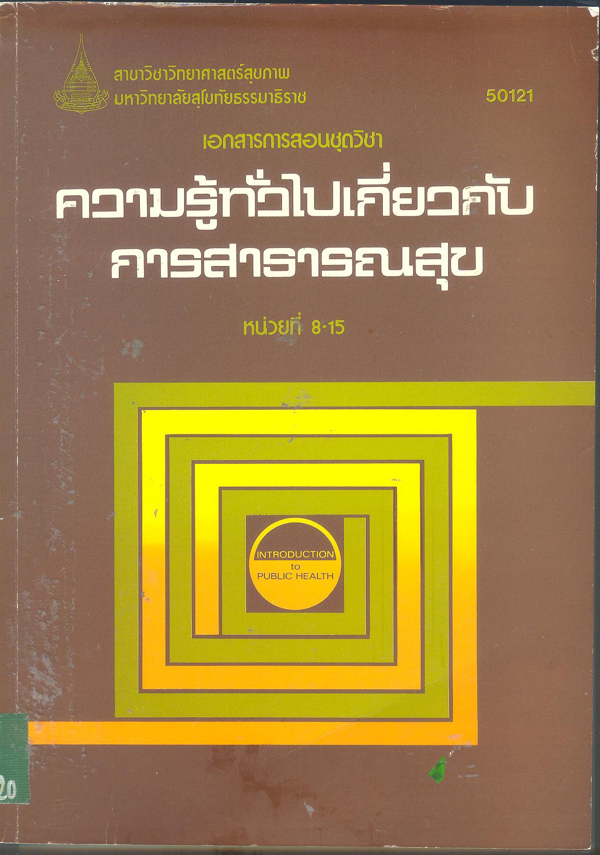 เอกสารการสอนชุดวิชา ความรู้ทั่วไปเกี่ยวกับการสาธารณสุข หน่วยที่ 8-15/ สุโขทัยธรรมาธิราช, มหาวิทยาลัย. |