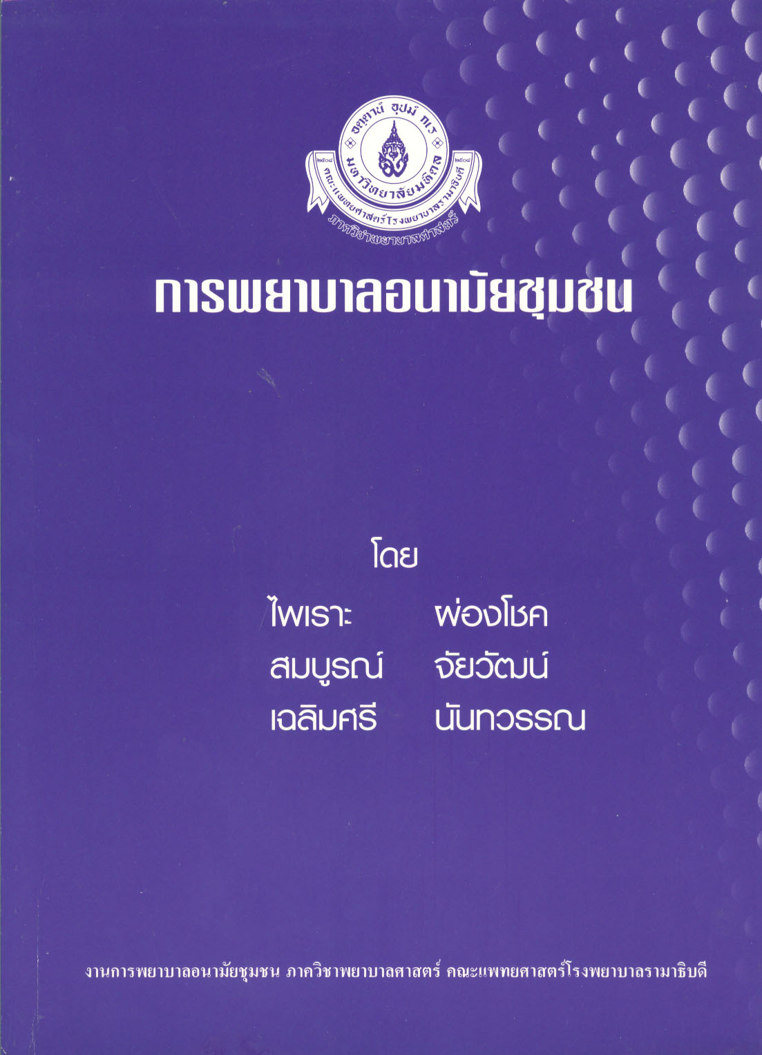พิมพ์ลักษณ์  กรุงเทพฯ : งานการพยาบาลอนามัยชุมชน ภาควิชาพยาบาลศาสตร์ คณะแพทยศาสตร์โรงพยาบาลรามาธิบดี, 2550