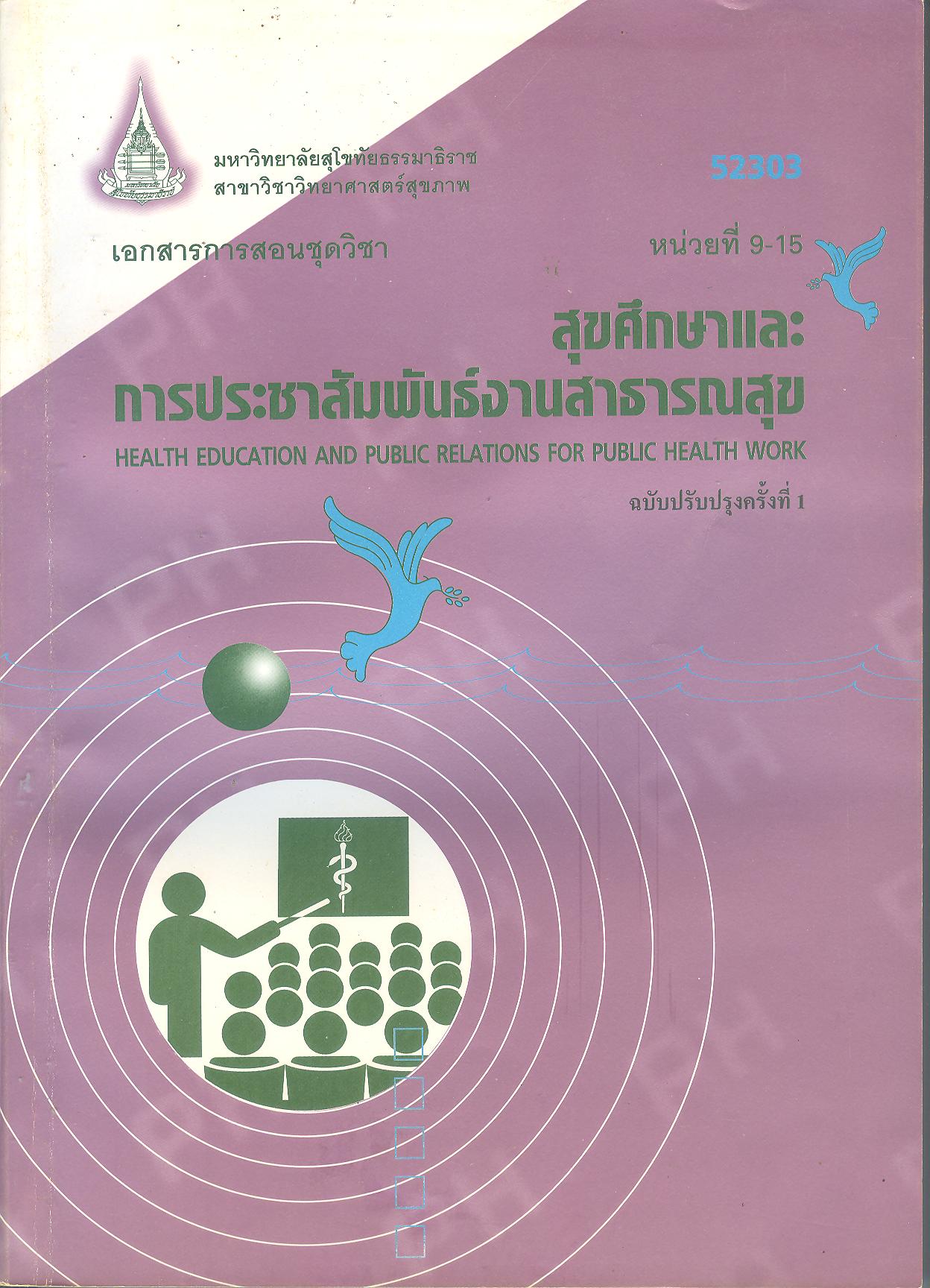 เอกสารการสอนชุดวิชาสุขศึกษาและการประชาสัมพันธ์งานสาธารณสุข หน่วยที่ 9-15= Health education and public relations for public healthwork / มหาวิทยาลัยสุโขทัยธรรมาธิราชสาขาวิชาวิทยาศาสตร์สุขภาพ