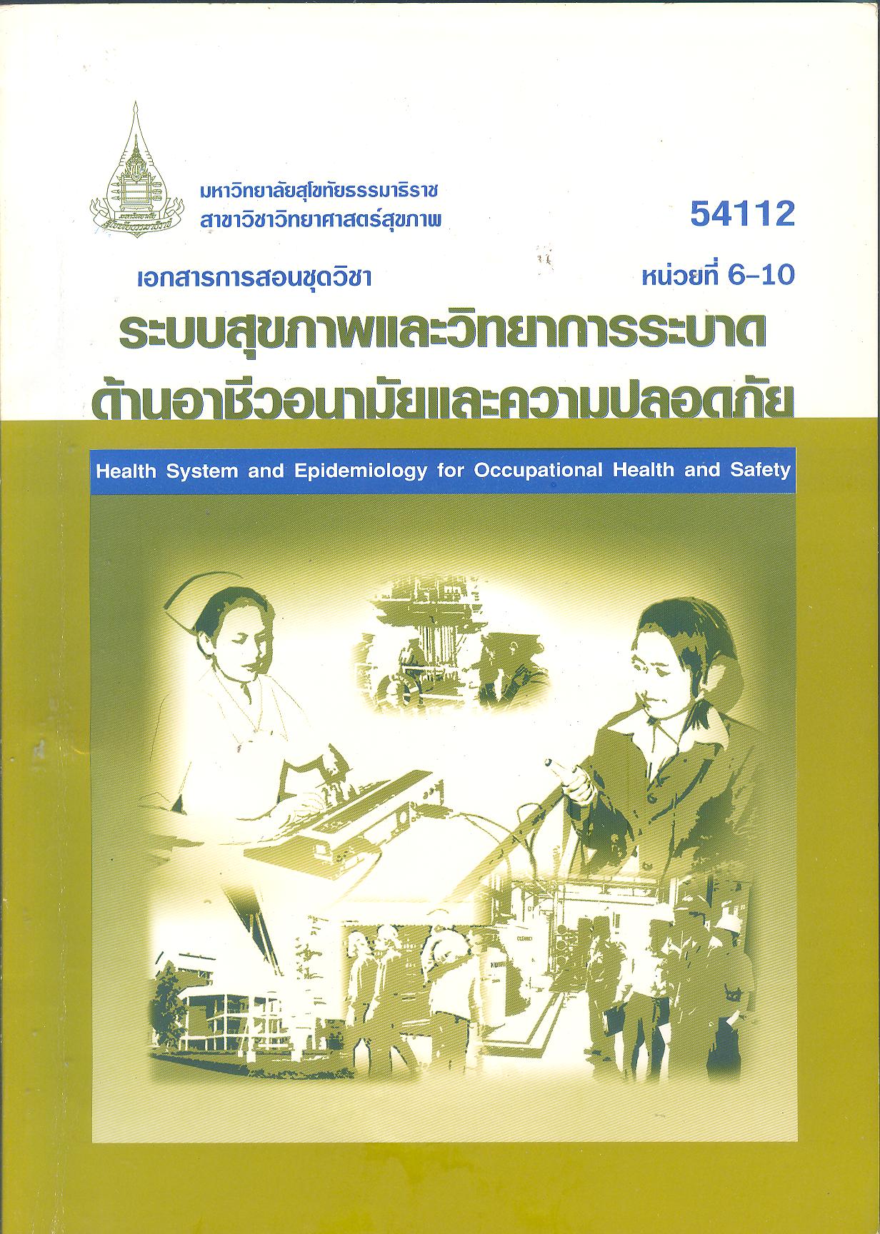 เอกสารการสอนชุดวิชาระบบสุขภาพและวิทยาการระบาดด้านอาชีวอนามัยและความปลอดภัย หน่วยที่ 6-10= Health system and epidemiology for occupational health and safety/ มหาวิทยาลัยสุโขทัยธรรมาธิราชสาขาวิชาวิทยาศาสตร์สุขภาพ |