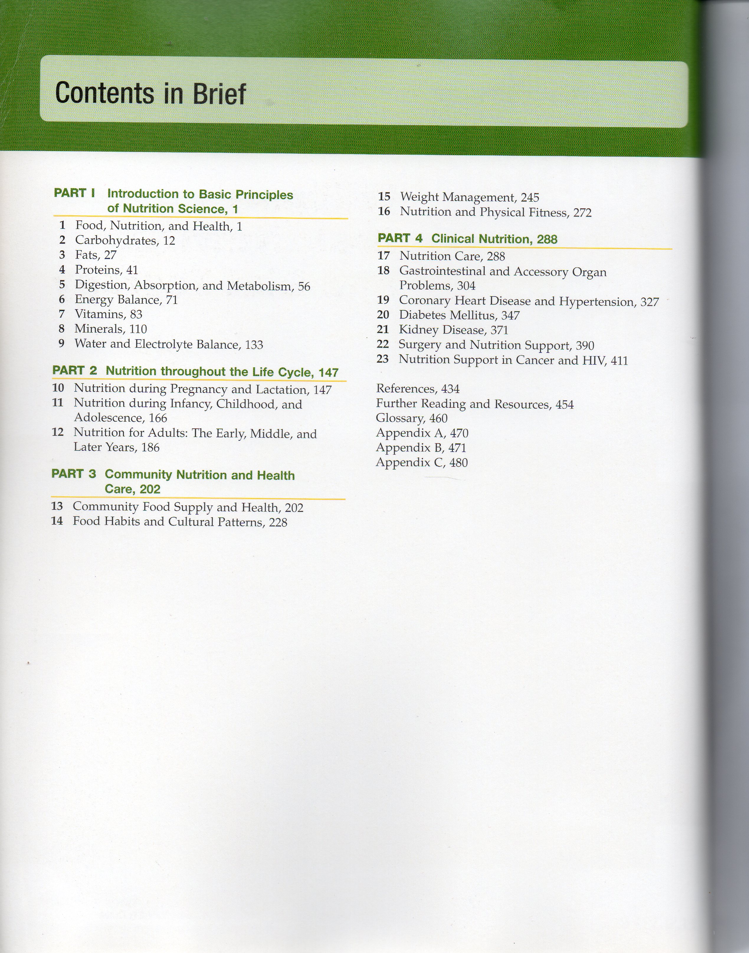 Contents: Part 1 Introduction to basic Principles of nutrition Science |