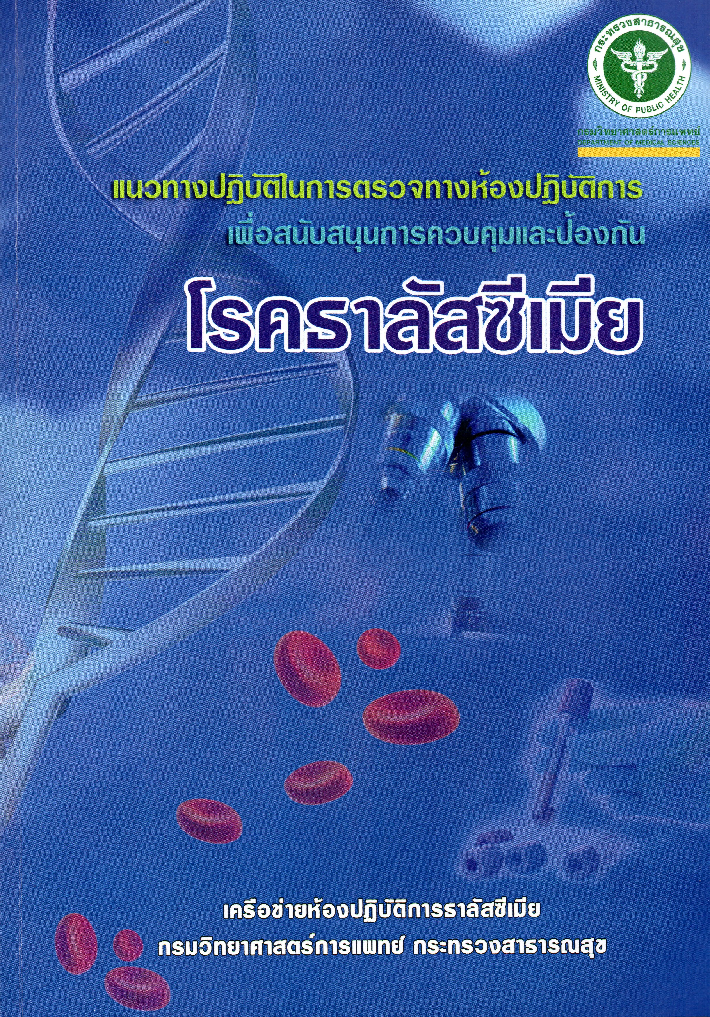 แนวทางปฏิบัติในการตรวจทางห้องปฏิบัติการเพื่อสนับสนุนการควบคุมและป้องกันโรคธาลัสซีเมีย/ กรมวิทยาศาสตร์ทางการแพทย์ กระทรวงสาธารณสุข |