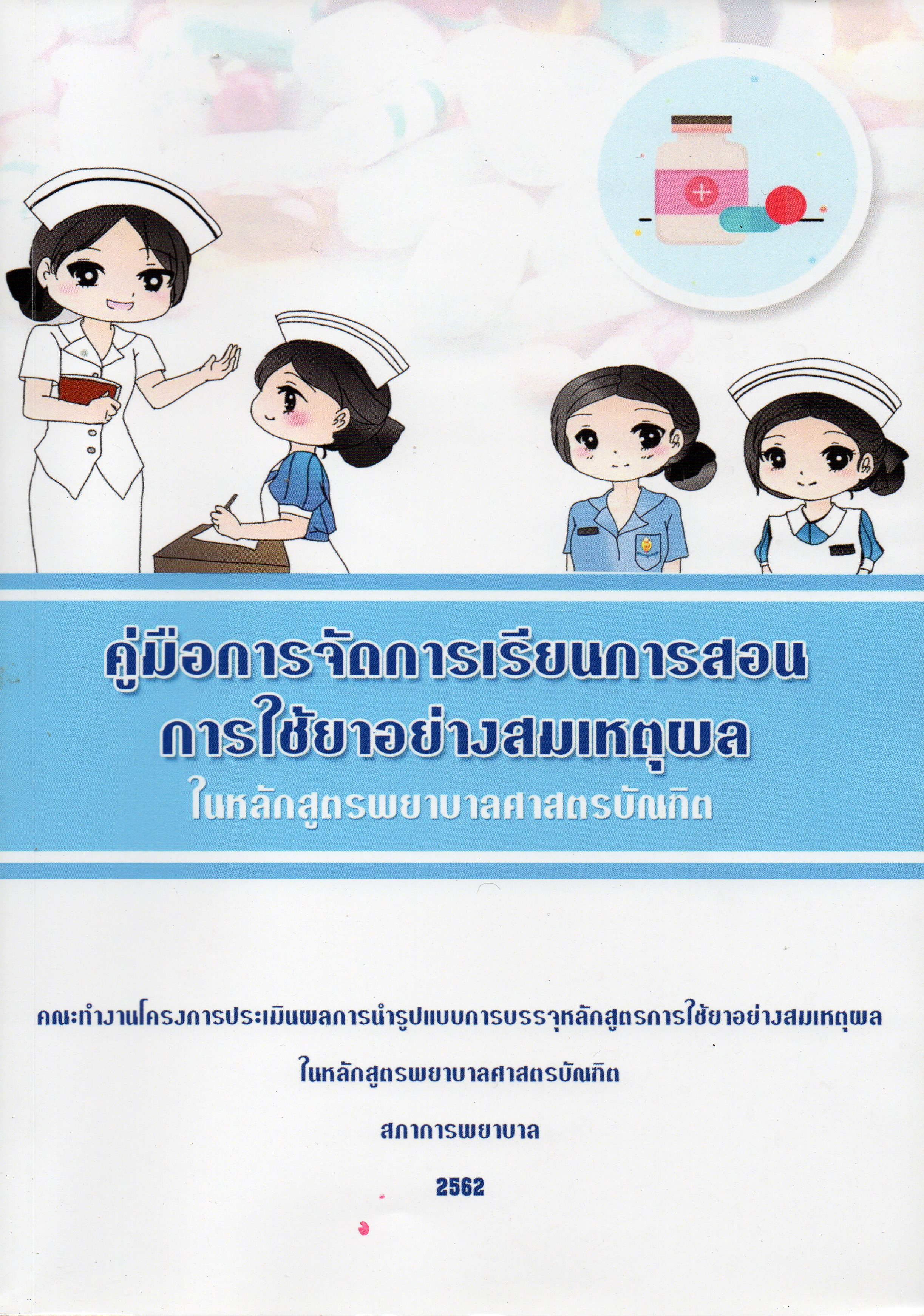 คู่มือการจัดการเรียนการสอน การใช้ยาอย่างสมเหตุผล ในหลักสูตรพยาบาลศาสตรบัณฑิต/ สุนทราวดี เพียรพิเชฐ, ศุกร์ใจ เจริญสุข, และทุติยรัตน์ รื่นเริง. (บ.ก.). (2562). |