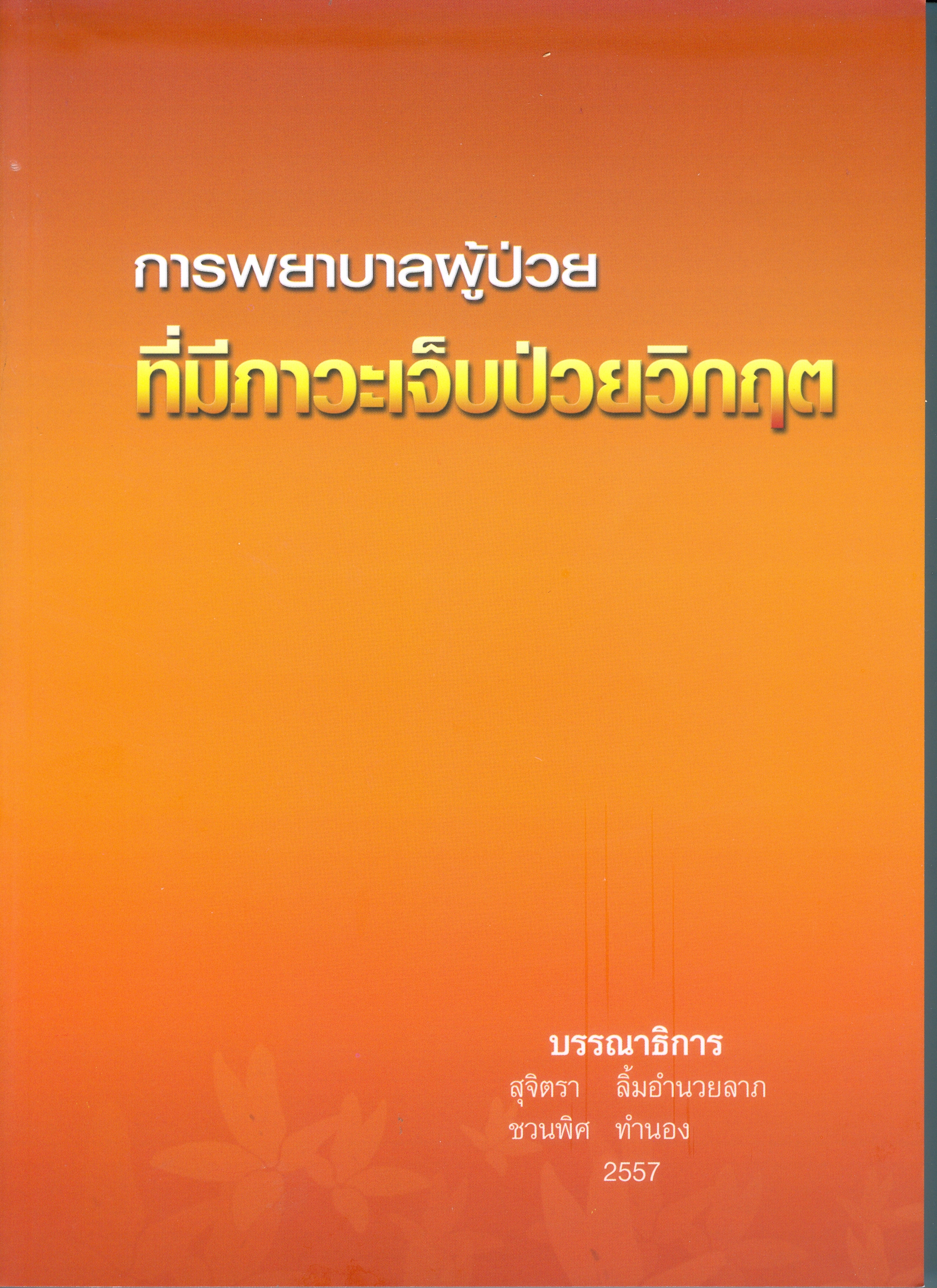 การพยาบาลผู้ป่วยที่มีภาวะเจ็บป่วยวิกฤต : Critical Care Nursing [On Shelf ชั้นหนังสือเก่า จำนวน 1 เล่ม 39692]/ สุจิตรา ลิ้มอำนวยลาภ และ ชวนพิศ ทำนอง